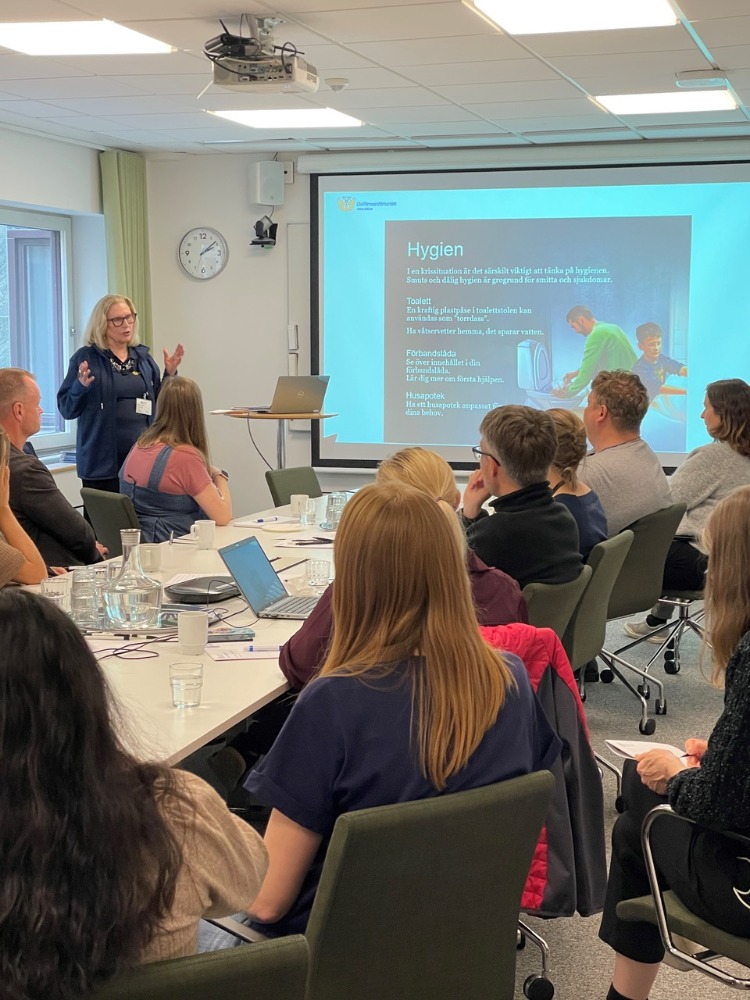 Stockholm 3 okt, 2025 Länsstyrelsen utbildas i Hemberedskap Under beredskapsveckan genomförde Pirkko Jonsson, styrelseledamot i Civilförsvarets stockholmsförening, en utbildning i Hemberedskap för personal på Länsstyrelsen. 27 Personer deltog